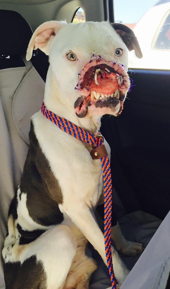 Brittany想要靠近牠,虛弱的Apollo沒有力氣逃跑,但非常警惕,一旦她靠得太近,就開始發出警告的咆哮。Brittany用了好長時間才讓牠放鬆下來,走到牠身邊時終於看清,牠臉上的恐怖傷口是人為的!有人用鋒利的刀具割掉了牠的鼻子和一部分嘴巴,現在牠只剩下半張臉了。