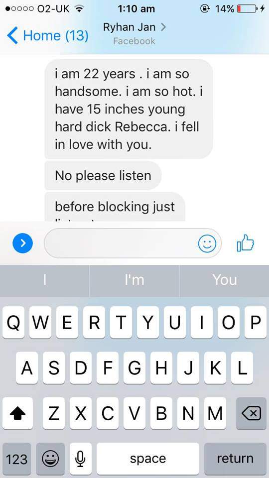 ▼每天被人這樣騷擾,脾氣再好的人也會爆發。Rebecca忍不住了,決定使出必殺技,讓他們再也不敢這樣做。深思一番後,她……把寄來的裸照寄給了對方的媽媽。果然,向媽媽告狀這一招才是終極絕殺,從幼稚園到現在都適用,而且屢試不爽,成功率高達98%。