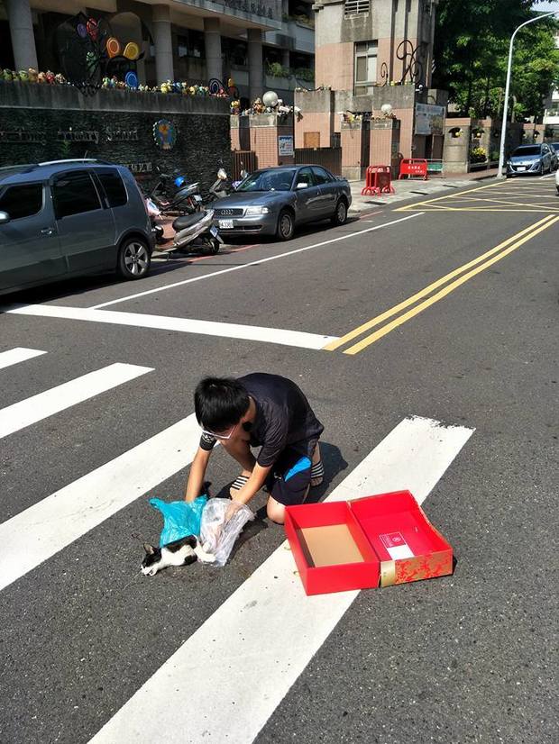 俗話說馬路如虎口,不只人車可能發生事故,許多流浪動物也常被撞飛。近日,嘉義市成功街與西榮街的路口就有一隻浪貓不幸慘死在路中間,許多路人看到都有所避諱,但一位國中生弟弟竟然主動出手幫忙,行為暖哭所有人!