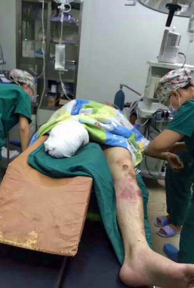 ▼兩人事後被送往醫院,原來這名68歲的老婦人有重聽的問題,不過幸好她全身只受了輕傷。徐前凱就沒那麼好運了,他的右腿傷勢十分嚴重,在當天下午接受手術將右腿膝蓋以下全部截除了。老婦人為了感謝他的救命之恩,還在他病床前下跪道謝。