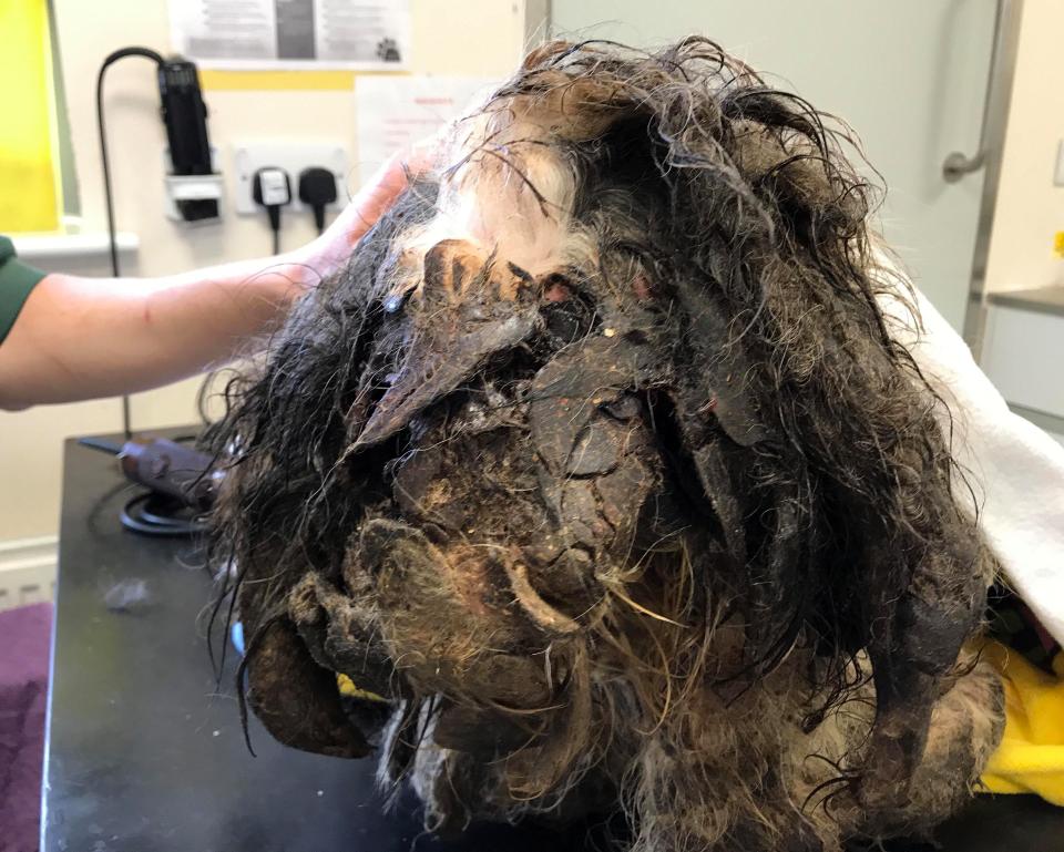 ▼獸醫認為,Soldier以前應該有主人,但後來被拋棄了。連續好幾個月,牠風餐露宿,在街頭流浪,這才變成這樣。就算如此,Soldier仍舊很親人,哪怕以「拖把」的型態在街頭閒逛,也很願意跟在人們身邊,希望有人能夠摸摸,但牠太髒了,換來的只有怒罵和尖叫。