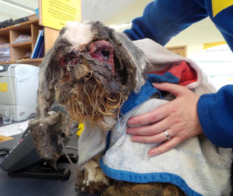 2017年07月10日前幾天,有人看到一個「髒拖把」自己在英國里茲的街頭晃來晃去。他們走進後才看清,這是一隻髒到不可思議的長毛狗!牠不知道多久沒有洗澡、剪毛,從頭到尾都是贓污,腳上的毛和耳朵上的毛糾結起來,移動時難免撕扯,逐漸脫落露出光禿的皮膚。牠的眼眶周圍更嚴重,看起來超可怕。