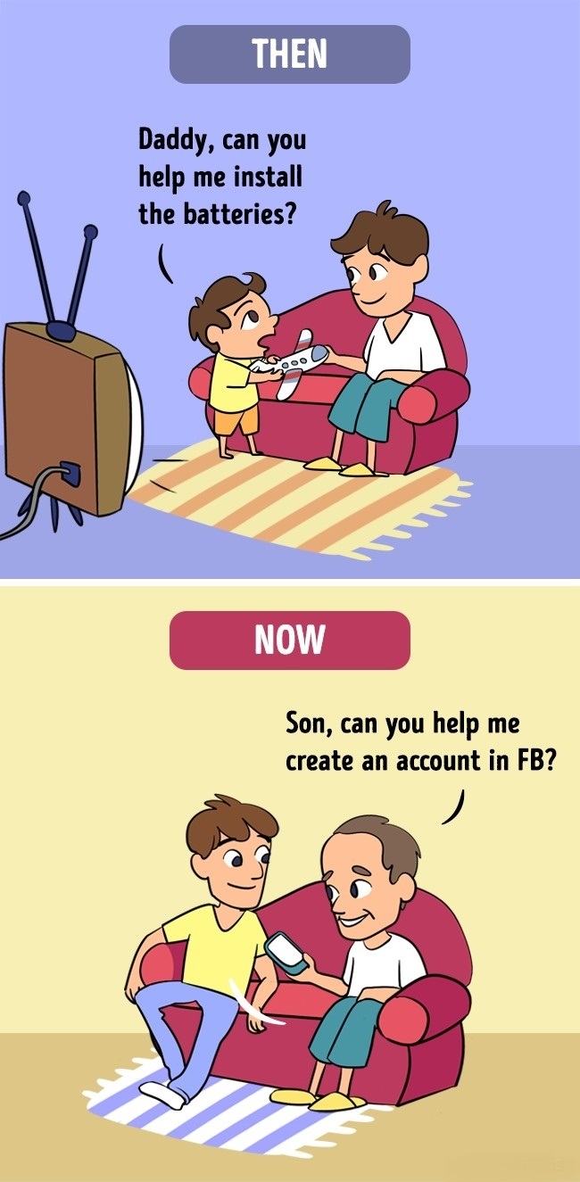 ▼從前:爸爸,可以幫我裝飛機的電池嗎? 現在:兒子,可以幫我創一個臉書帳號嗎?(只有小編覺得這點有洋蔥嗎?QAQ)