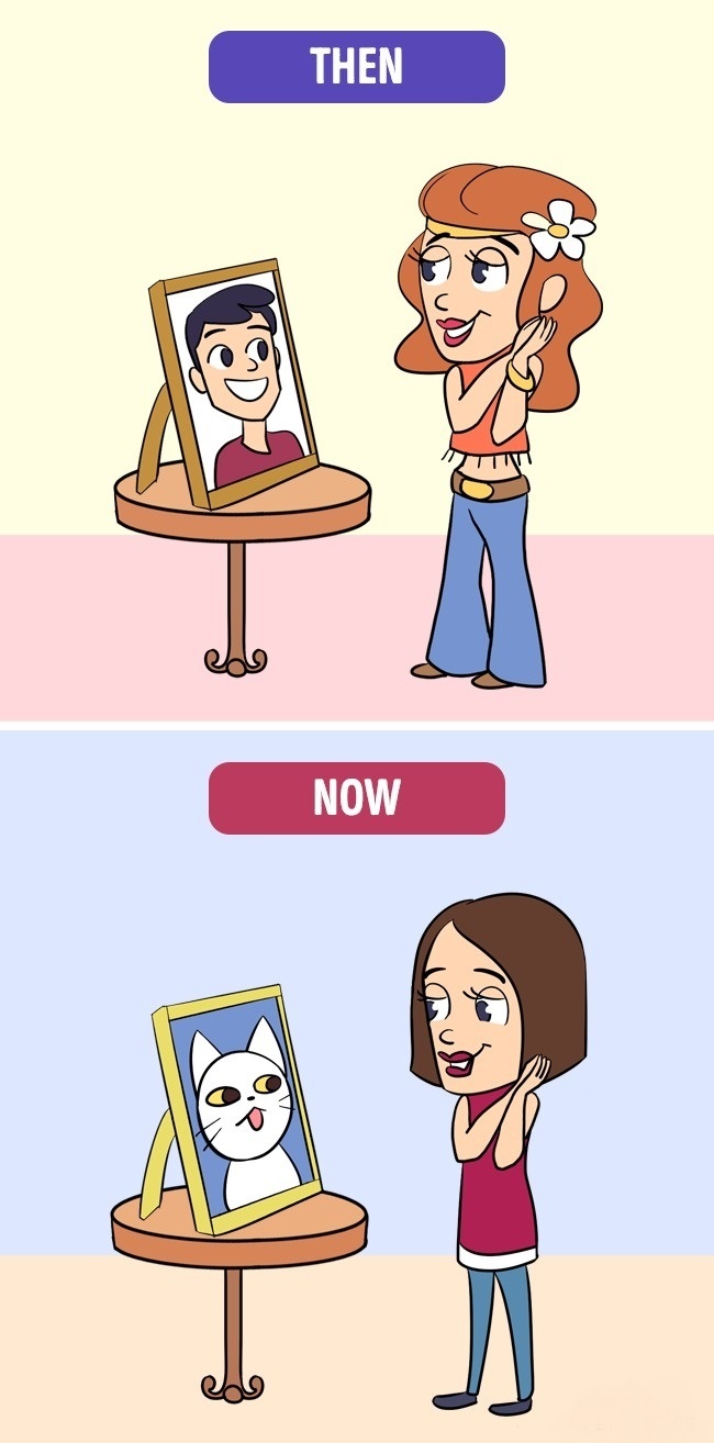 ▼從前:相片擺放的是親朋好友的照片。現在:相片擺的是可愛寵物的照片。(單身真好?)