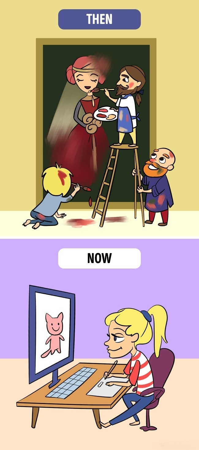 ▼從前:用顏料創作一幅畫。現在:電腦繪圖當道。(但小編不管哪一個都很不在行…)
