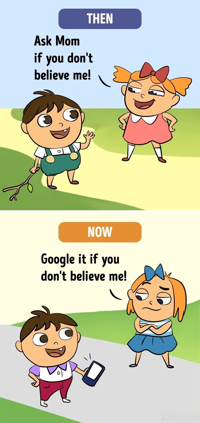▼從前:如果你不相信的話可以問你媽。現在:如果你不相信你可以上網搜尋。(地方的媽媽在哭泣了!)