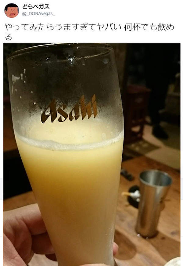 ▼因為聽起來實在很神奇,所以也有許多網友率先嘗試了。首先,要準備的就是一杯可爾必思、啤酒、攪拌棒和杯子。當然啤酒只要看冰箱有什麼酒就行,其實也不一定要是Asahi的啦!