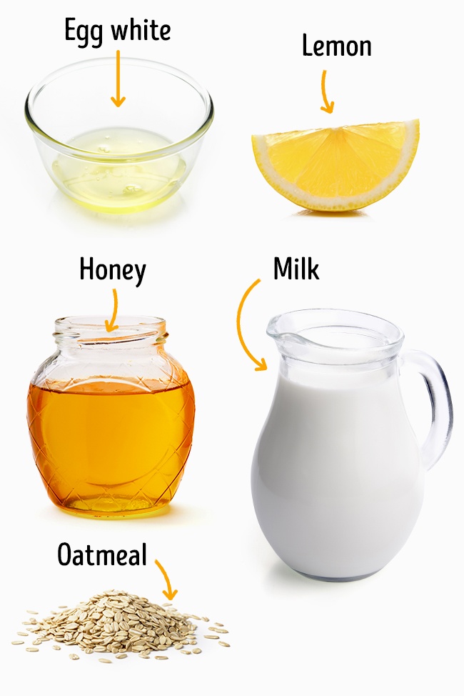 ▼祛痘補水面膜。蛋白打發成泡沫狀,加入蜂蜜、牛奶、檸檬汁各一勺,混合後加入少量麥片。塗在臉部保持15分鐘,然後用加入洋甘菊的清水洗淨。這款面膜不僅可以急速補水讓肌膚恢復彈性,還可以祛除痘印,痘痘肌的你可以嘗試一下。