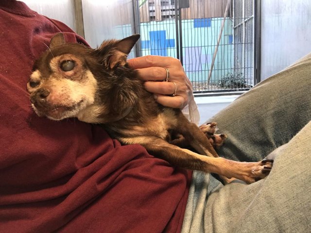 本月初,果凍的主人由於某些原因將牠遺棄在了鮑德溫公園庇護所。任何一隻狗狗面對這樣的變故都會難以忍受,更何況果凍不僅年老,而且還是一隻眼盲、部分聾啞,甚至于還患有其他疾病的狗狗。