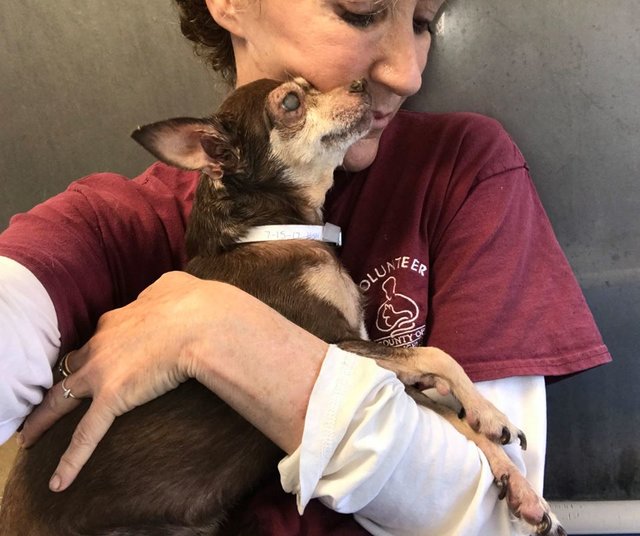 2017年07月29日Seamans是一名在洛杉磯鲍德温公园庇護所工作的志願者,不僅如此,她還經營者At-Choo基金会,這個組織幫助支付庇護犬的醫療費用。她與盲犬「果凍」的緣分始於幾張照片,在看了幾張果凍的照片之後,她決定親自去看看這隻14歲的盲犬,因為牠擊中了她的心。