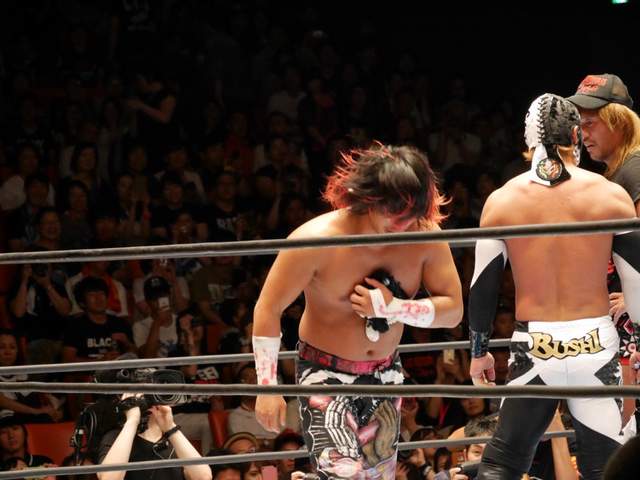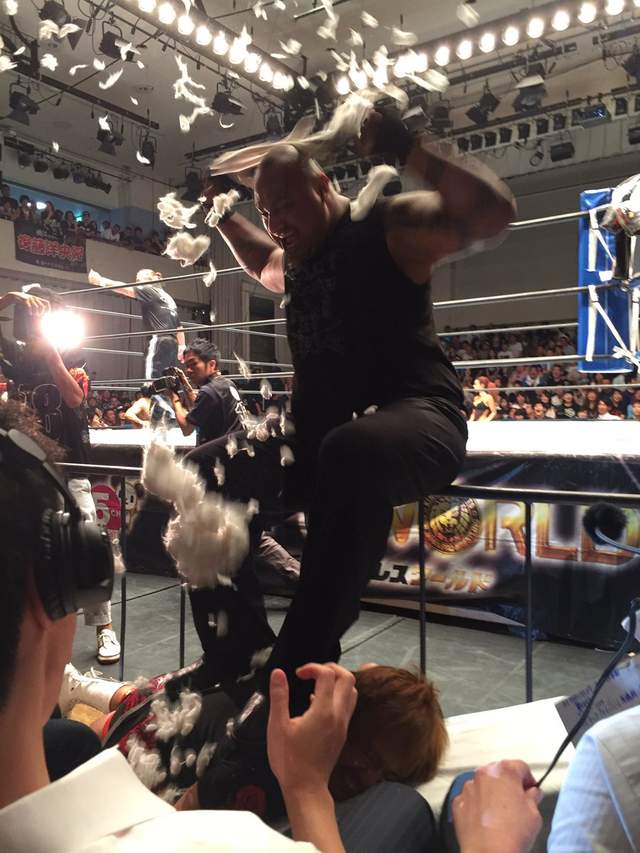 ▼Darryl的內戰散落得到處都是,內藤哲也背上也有不少。