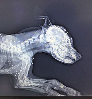 ▼當拍過X光片後,她們發現傷口竟然是人為造成的,有人多次拿著BB槍朝牠射擊!