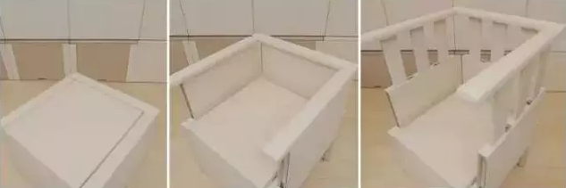 ▼改造之前,一家人擠在這個小空間裡入睡,有了「3段椅」,嬰兒床看起來超舒服。