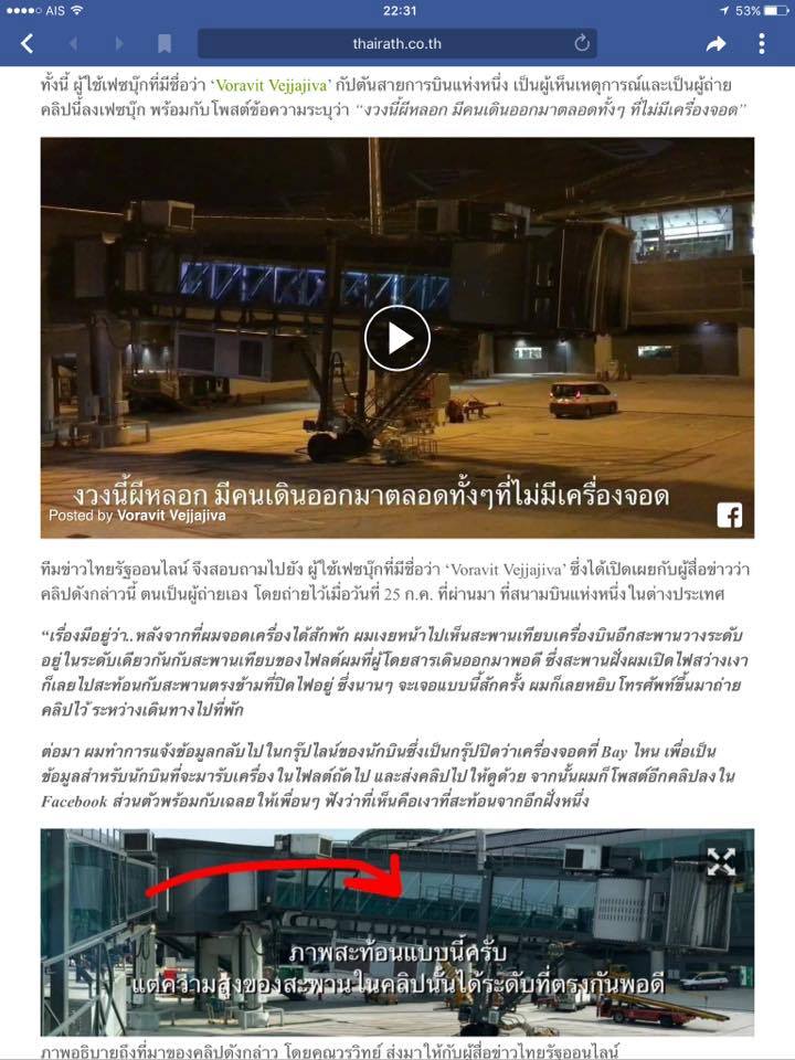 他在泰國機場驚見沒連飛機的空橋「出現大批遊客飄出」,拍下影片證明讓大家感覺毛毛的!