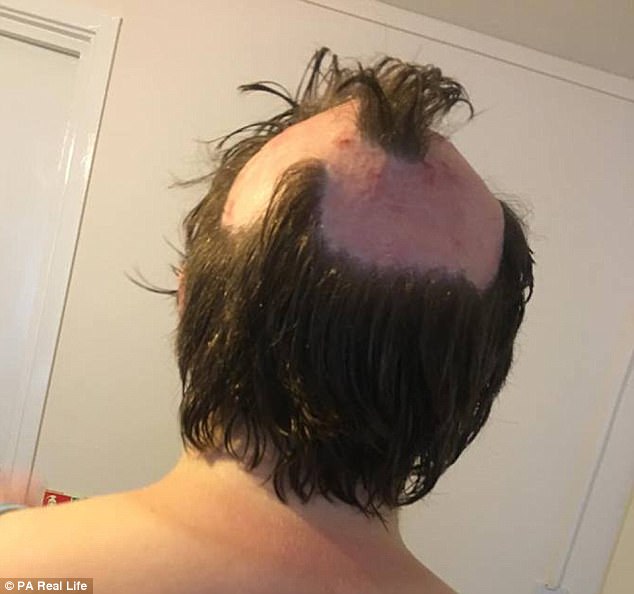 ▼最後醫生確定,Kirsty屬於化學燒傷,必須接受植皮手術。他們先把她的頭髮剃掉,然後從她的右腰取了一塊皮膚做移植。不過腰部的皮膚沒有毛囊,Kirsty的頭頂再也長不出頭髮了。