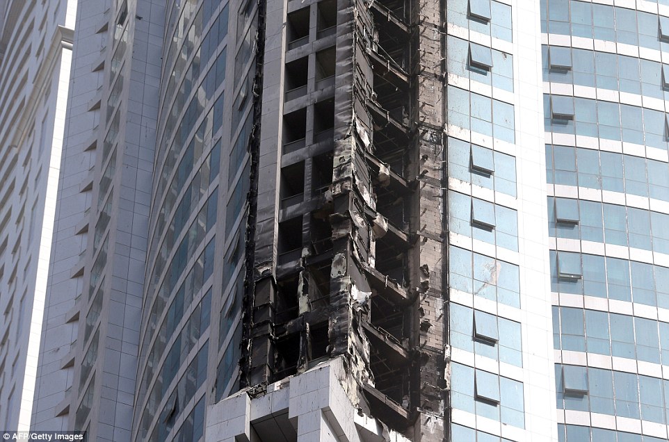 ▼現在杜拜對新建築使用外牆板頒布了限制措施,規定9層以上的建築禁止使用外牆板。不過這一規定沒有被立刻運用到之前建造的大樓上。