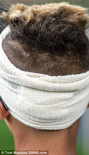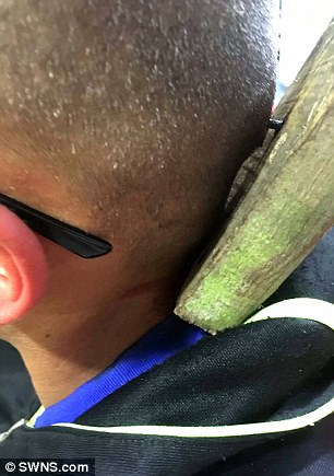 ▼爸爸立刻跑出去找他,很快就看到了他。當時他在樹上,幾個孩子拿著棍棒在下面用難聽的話侮辱他。看到Romeo的爸爸過來,那些調皮的孩子很快就跑掉了,其中一個孩子把手中的板子扔向Romeo,那塊板子上有一個生鏽的鐵釘,正好插在Romeo腦後。