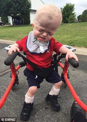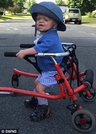 ▼他們的外出需要小輪椅,呼吸需要呼吸管,還需要佩戴眼鏡。