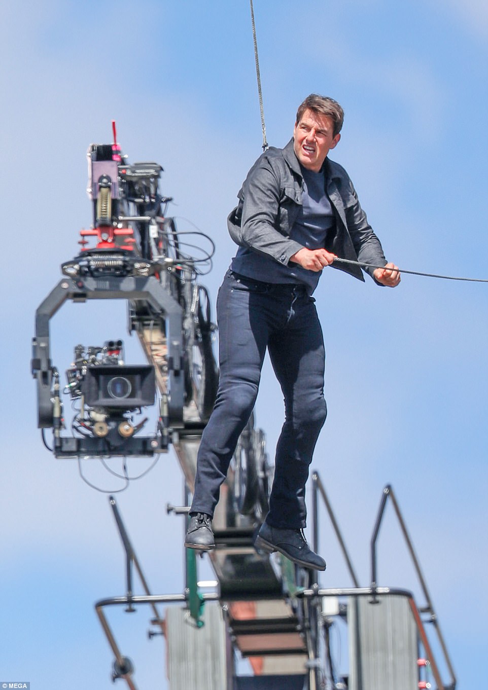 ▼根據英國《太陽報》的報導,阿湯哥當時在倫敦市區拍攝一幕兩棟高樓之間吊鋼絲跳躍的戲時,55歲的他親身上陣拍攝。