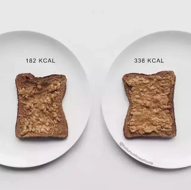 ▼兩片看起來一樣的吐司,為什麼卡路里相差那麼多呢?原來關鍵就是花生醬的多少!