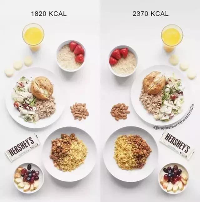 ▼來看看這兩張圖片,看起來是一樣的食物,為什麼熱量差了那麼多呢?原來答案就是:低糖橙汁和正常橙汁、無糖麥皮和即食麥皮、輕盈沙拉醬和正常沙拉醬、少油烹調和橄欖油烹調等,這些小細節竟然讓看起來一樣的食物卡路里相差了500之多!