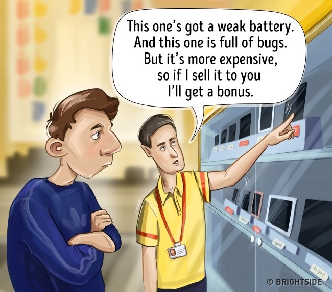 ▼8.推銷員:「這一款的續航能力很差,這一款bug滿滿。不過它更貴一些,如果我賣給你,我能拿到更多錢。」