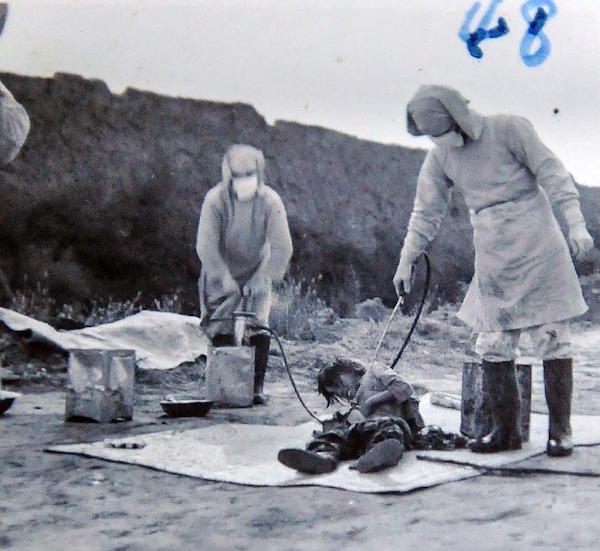 ▼另有衛生兵承認,他們用白砂糖做成糖水,在裡面摻入沙門氏菌,強迫活人喝下去,讓他們被迫細菌感染來進行實驗。這些可怕的實驗都是為了日軍的「細菌戰」做準備,有文獻指出,日軍在二戰時於中國農安、寧波等地6次投菌,造成超過2.6萬人感染可能鼠疫或敗血症。