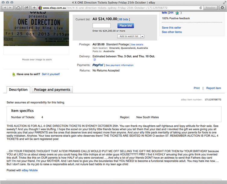 ▼10. 媽媽本來要一世代演唱會門票當做生日禮物送給女兒和她的朋友,抓到女兒說謊後,她決定把門票轉賣出去。