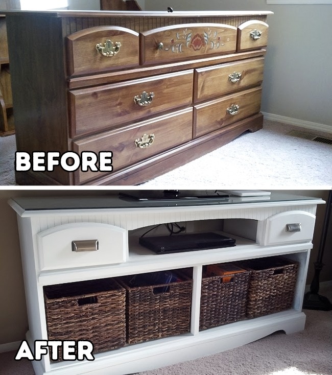 ▼5. 電視櫃:把舊櫃子翻新一下,去掉幾個抽屜,重新刷漆,看起來就像另一件傢俱。