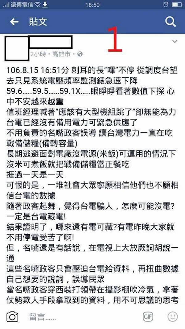 ▼不過一位台電員工貼文爆料說,當天就聽到「嗶」的一聲,值班經理推測「應該有大型機組跳了」,但台電已無備用電力,「不用負責的名嘴政客誤導,讓台灣電力一直在吃『備轉容量』,長期逃避面對電廠沒電源可運用情況下,沒米可煮飯,就把戰備儲量當正餐吃,也不願相信台電的數據。」