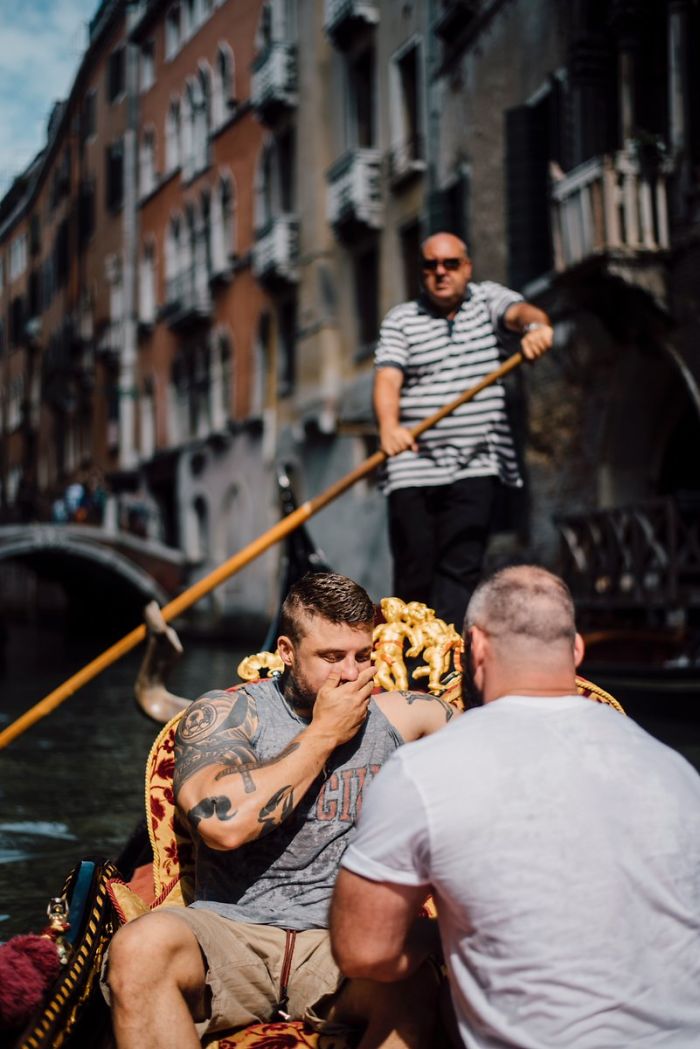 ▼派翠克等到平底船行駛到威尼斯瀉湖時,馬上把握時間提出求婚,當然這一幕也都被相機記錄了下來。