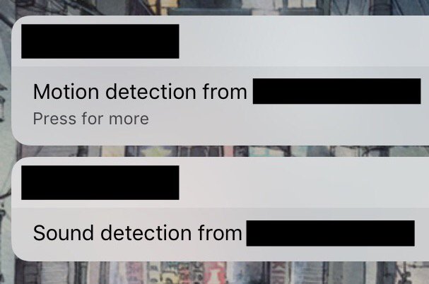 ▼這台監視器能夠跟手機app連接,只要偵測到物體移動或是聲音就會自動傳送通知到手機上。為了測試監視器運行是否正常,他還專程離家一天觀察監視器的運作。到了晚上11點左右他的手機突然接到通知,監視器偵測到了移動的物體和一些聲音。