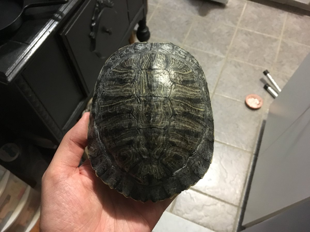 ▼好好一個掛在牆上的龜甲怎麼會無緣無故掉下來呢?不過這還不是最恐怖的部分…