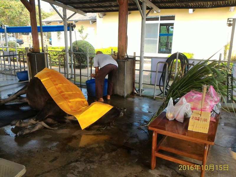 ▼梁平立刻趕到台南,「老牛之家」的工作人員已經為牛牛蓋上黃色獸醫。看到陪伴自己20多年的老牛躺在地上沒有呼吸,梁平非常難過。