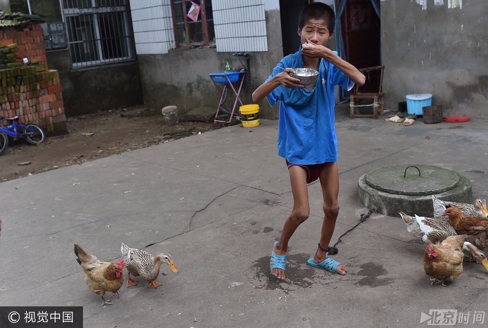 2017年09月06日其他17歲少年忙著上學、玩鬧的時候,安徽合肥男孩杰杰卻被家人綁在家附近的井邊,日復一日同雞鴨待在一起。他已經這樣過了10多年,並不是家人虐待他,而是真的沒有辦法。