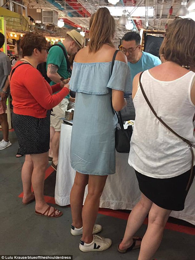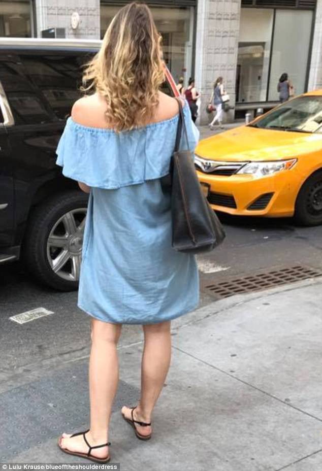 ▼她穿了一件Zara的「一字荷葉領藍色洋裝」,想要看看撞衫情況。這件衣服特徵明顯,是否撞衫一目了然。為此她還特別架設了一個網站「The Blue Off-The-Shoulder Dress From Zara」,將拍到的撞衫照片都PO上去,結果……