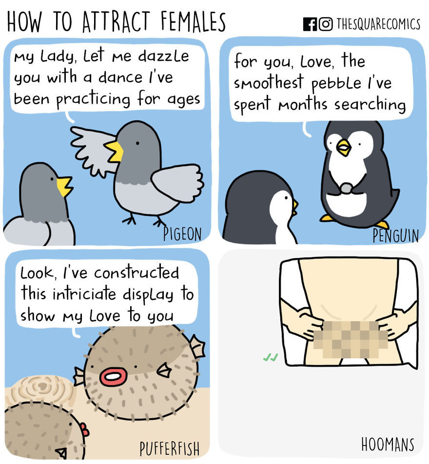 企鵝:「親愛的,這塊我花好幾個月找到的最平滑的石頭送給你。」