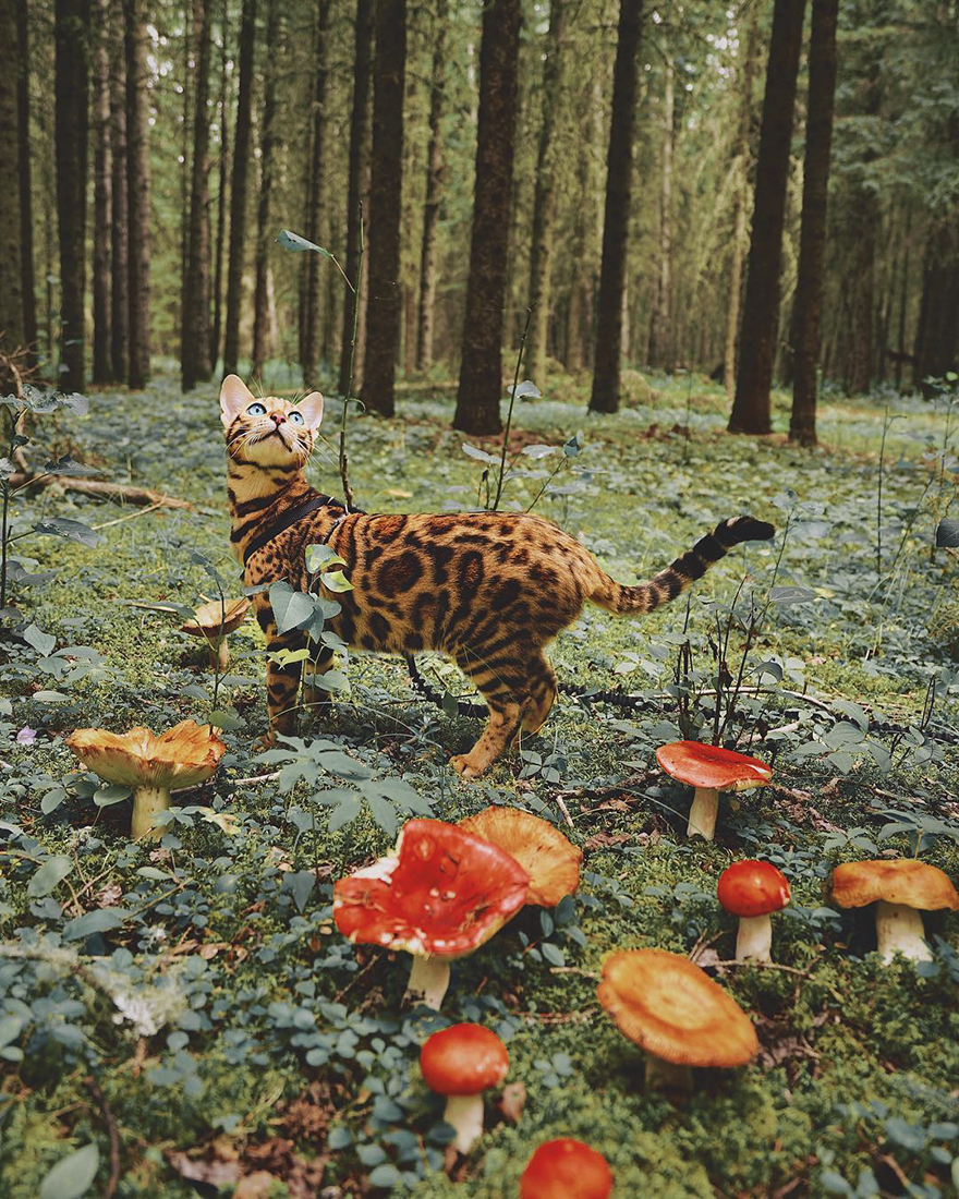 ▼作為一隻典型的孟加拉貓,Suki本來就擁有美麗的大眼睛和漂亮的虎紋皮毛,在各種各樣的美景前拍照,牠看起來更威武。