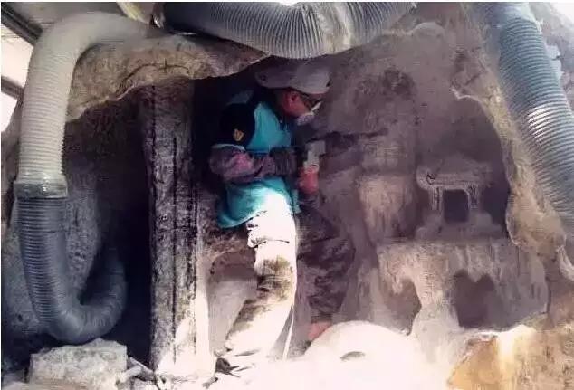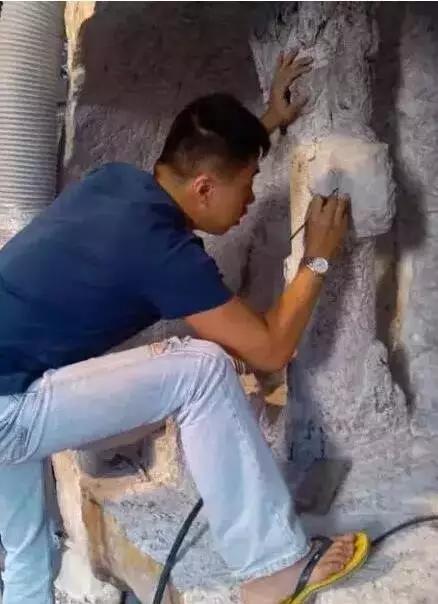 ▼把主體掏空了以後,開始一點點的精雕細啄,因為石材的實際情況和設計的時候有出入,所以他們就一邊雕刻一邊修改。