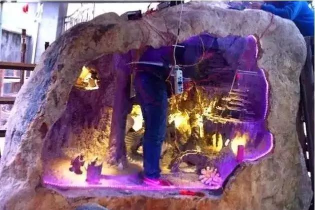 ▼雕刻完成後,開始加底座,裝玻璃,加燈光,注水這一系列後期完善工作。由於是不規則的開口,裝玻璃也是一件高難度的事情,前後調整了多次才成功。