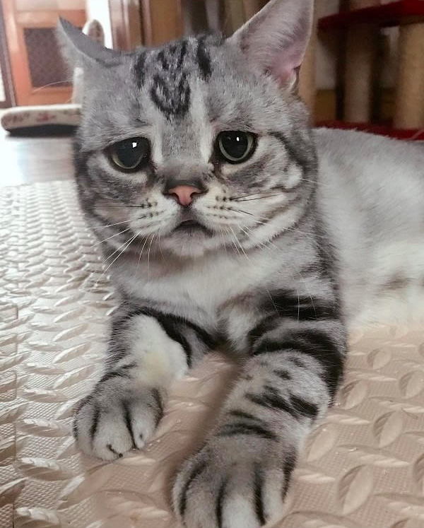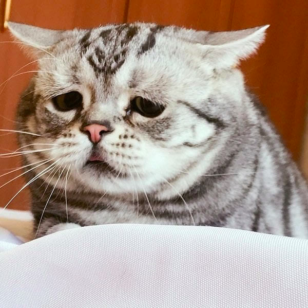 大部分貓咪都長著一雙微微上挑的眼睛,看起來很銳利。但下面這隻叫做Luhu的貓咪卻不同,牠天生有一雙下垂眼,隨時隨地都是一副「不開心」、「好哀愁」的樣子。