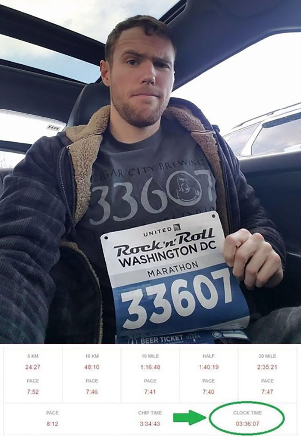 ▼郵編、T恤上的號碼、比賽號碼、完成比賽時間都是33607。