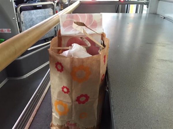 ▼高雄一位女網友發文表示,某天她抱著小孩、背著包包,手上還拿一個裝飲料和食物的紙袋搭公車。上車後,她也沒多想,就把紙袋放在地上,沒想到公車突然煞車,袋內的飲料都倒出來留在地上。