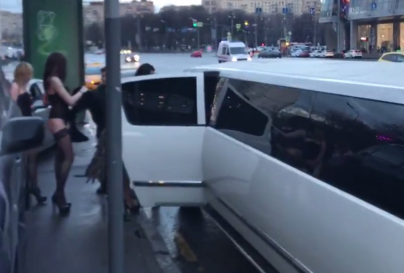 ▼最後這一群辣妹走出麥當勞,上了一輛白色的加長型禮車離開了。