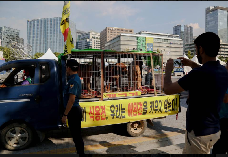 ▼狗肉協會的會長金相永(Kim Sang-young,音譯)表示,偏遠農村的很多老人就是靠養狗販賣維生,禁止吃狗肉是在剝奪他們的生計。他認為狗肉貿易應該合法化,讓狗販在合法的框架下發展產業,再也不受動保組織的干擾。他還提出,現在南韓有250多種犬類,政府只要允許一兩種狗可以宰殺食用,並立法保障狗販就好了。