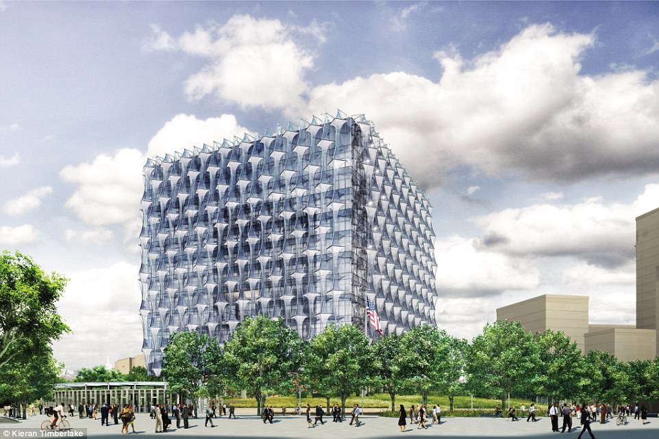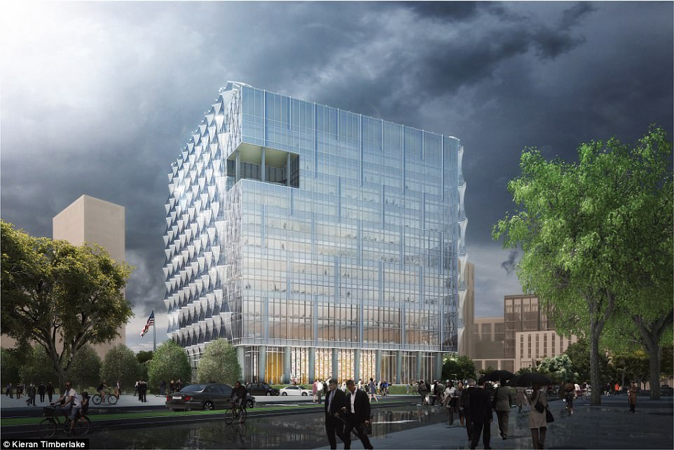 ▼美國曾經的大使館由於過於狹小無法滿足需要,必須尋找地方。知名建築事務所Kieran Timberlake承擔了新大使館的設計,設計師也表示「新館將滿足所有的安全標準,將利用周圍的景觀,它沒有牆也沒有圍欄。」
