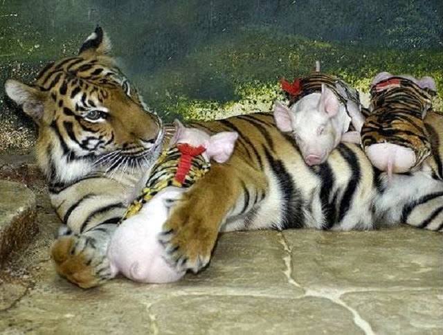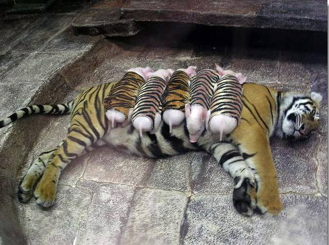 園方大膽把小豬假扮成老虎寶寶安慰喪子的母老虎,沒想到看到最後會是這種結局!