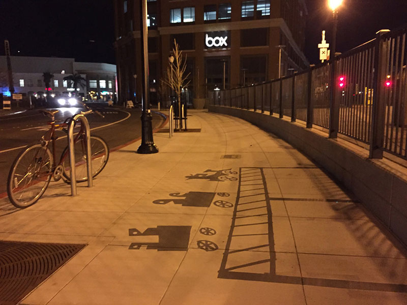 2017年10月01日走在舊金山紅木城(Redwood City)的街道上,你可以發現一些郵箱、長椅、腳踏車架、圍欄等常見的物品倒影出很特別的影子,原來這並不是真的影子,而是用粉筆和顏料在地上畫成的「假陰影」,這是由舊金山藝術家達蒙·貝朗(Damon Belanger)的團隊創作的,他們用「影子藝術」賦予了這些物品新的生命。