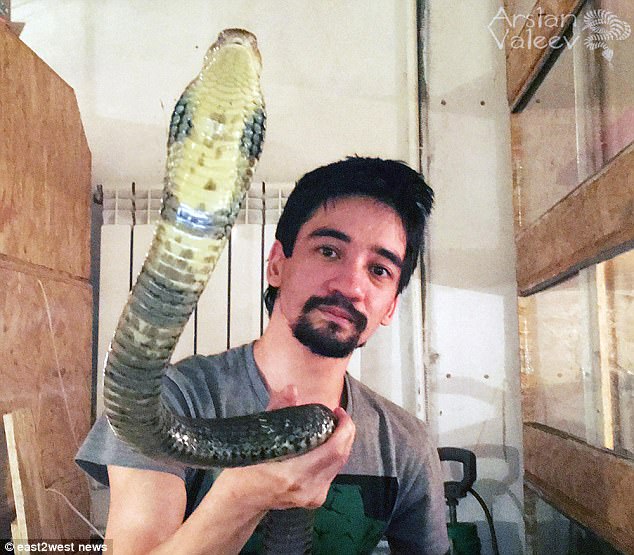 ▼這名31歲的弄蛇人阿什蘭(Arslan Valeev)是同伴一起經營一個YouTube頻道,經常在網路上分享與蛇同樂的影片。