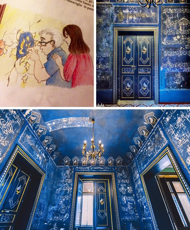 ▼藍色小屋:一對夫妻買下了義大利巴勒莫的老公寓,翻修時發現一個房間的灰泥後有一點藍色,上面還有隱約的銀色、金色阿拉伯字體。他們後來才發現這是一個藍色房間。專家認為這是「奇蹟屋」,是當地信奉魔術的人施魔法的地方。